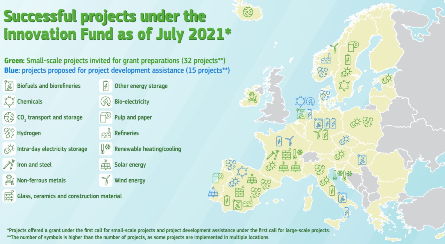 Uniunea Europeană are unul dintre cele mai largi programe de finanțare pentru tehnologii inovatoare curate, adică cu puține emisii de carbon. Bugetul pentru perioada 2020-2030 este în jur de 20 de miliarde de euro, depinzând de prețul carbonului, fonduri care vor merge către proiecte comerciale axate pe tehnologii curate, urmărind sp aducă pe piață soluții industriale pentru decarbonarea Europei și sprijinirea neutralității climatice până în 2050.