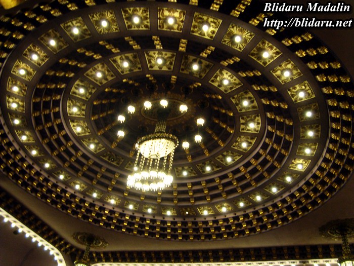 Holul interior este impunător, fiind lung de 45 de metri, realizat din marmură de Carrara și delimitat de două oglinzi venețiene.