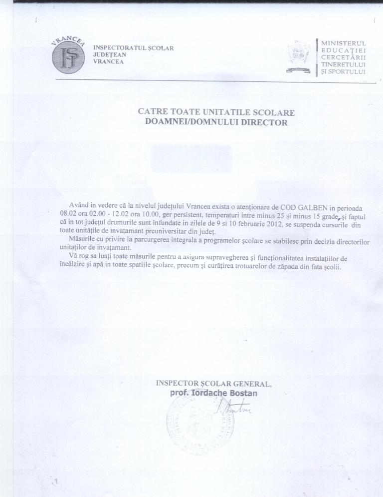 Datorită condițiilor meteo, Inspectoratul Școlar Județean Vrancea a decis suspendarea cursurilor în data de 9 și 10 februarie. Deja nu se învață de trei zile în județ.